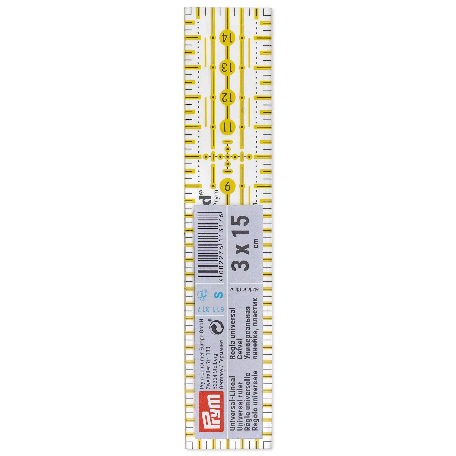 PRYM SQUARE RULE 15 x 3cm square 3mm Patchwork Quilt Ruler 611317