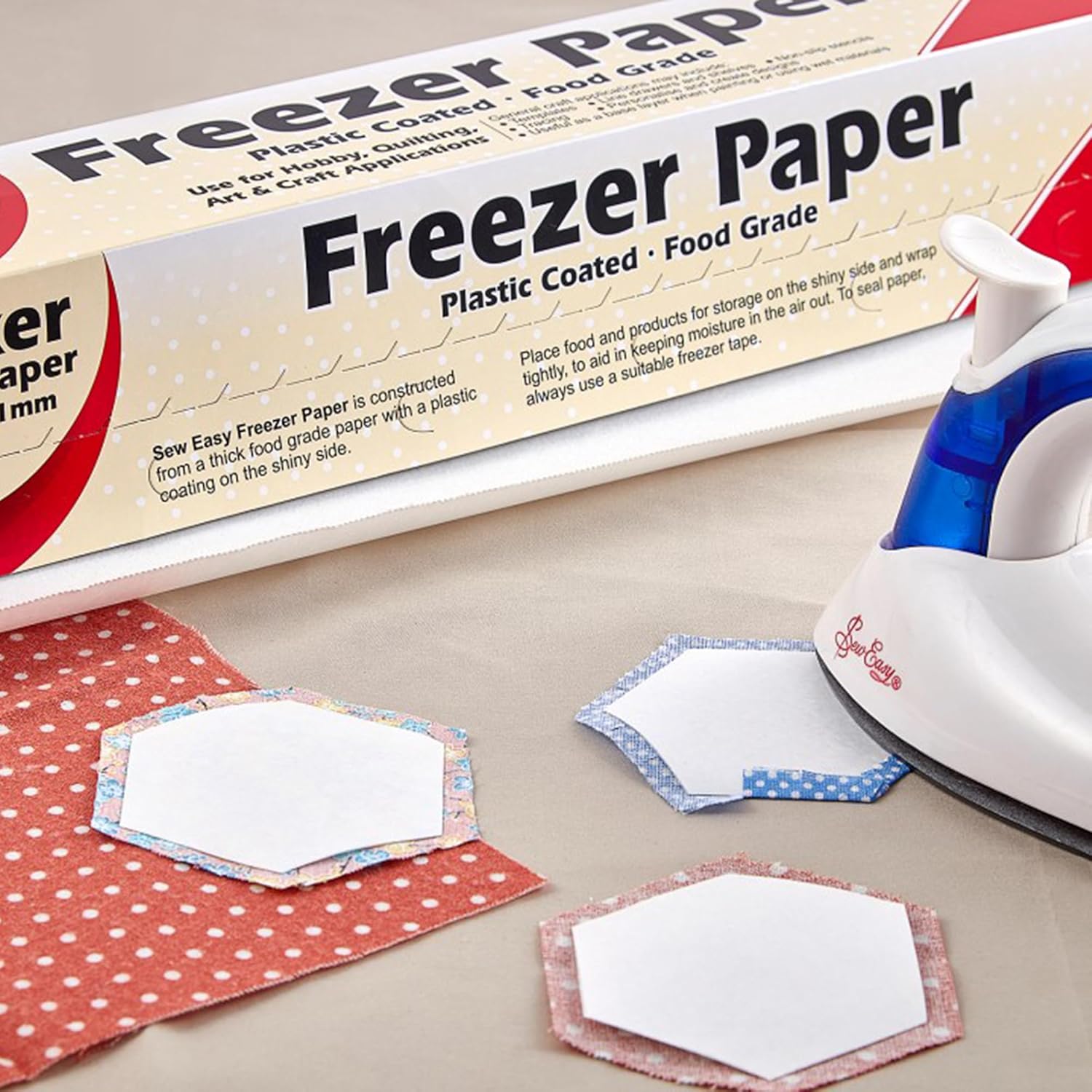 Sew Easy Freezer Paper è la carta freezer originale per quilting e appliqué: food-grade spessa, con lato lucido plastificato che aderisce temporaneamente al tessuto con il ferro e si rimuove senza residui. Perfetta per sagome precise, foundation/paper piecing, stencil antiscivolo, tracciatura e lavori craft.